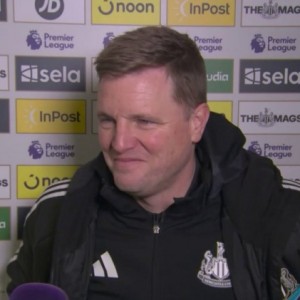 3月5日讯 英超第29轮比赛,纽卡主场2-1击败曼联,纽卡主帅埃迪·豪赛后接受了拜因体育的采访。埃迪,恭喜你。多么精彩的...